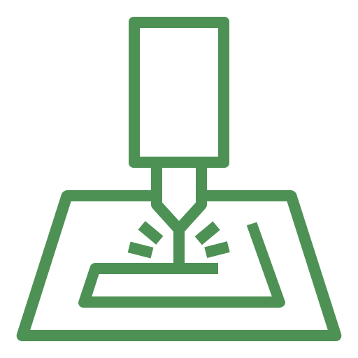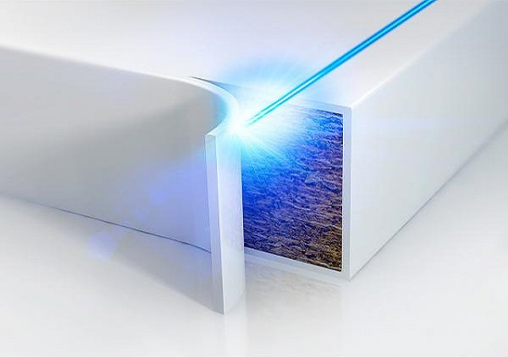 На специальном лазерном станке нижний слой кромки разогревается лазером и под давлением прижимается к торцу фасада. Таким образом, расплавленный полимер кромки проникает в пористый торец фасада и при застывании образует практически монолитную деталь без какого-либо шва.