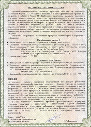 Все изделия проходят 48-часовую термообработку, в результате чего становятся прочными и экологически чистыми. Весь товар сертифицирован. С нашими сертификатами вы можете ознакомиться